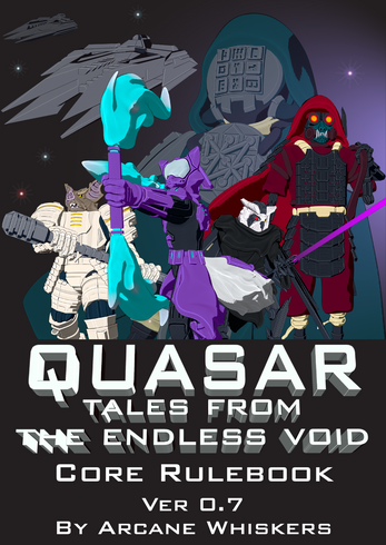 Quasar is a free, combat focused TTRPG that blends mechanics from PVP tabletop skirmish games into a cooperative experience .